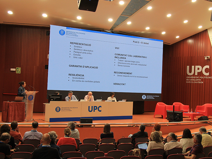 El Claustro Universitario de la UPC se ha reunido, el 7 de junio, para debatir sobre los valores de la UPC. Próximamente, se abrirá un proceso participativo mediante la herramienta de participación Kialo, para recoger las aportaciones de la comunidad. En la misma sesión, el rector Daniel Crespo presentó su informe, que también se debatió.