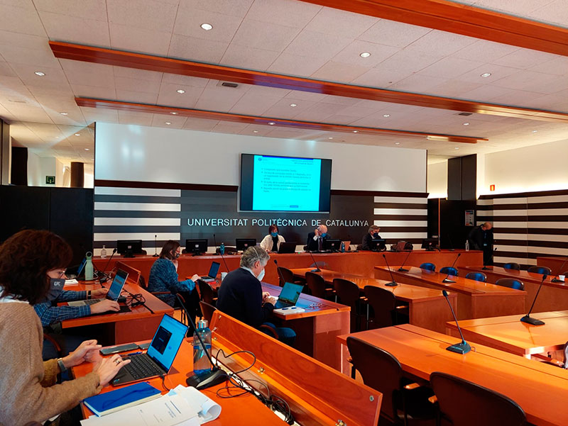 La sesión, que tuvo lugar el 22 de febrero, en modalidad mixta (presencialmente, en la Sala de Juntas del Rectorado, en Barcelona, y por videoconferencia telemática), se emitió en directo a través de Zonavídeo UPC, donde ya se puede visualizar, previa identificación con las credenciales de intranet.