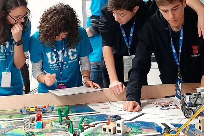 Por tercer año consecutivo, la Escuela de Ingeniería de Barcelona Este (EEBE) de la Universitat Politècnica de Catalunya · BarcelonaTech (UPC) ha sido la sede de la FIRST LEGO League. La jornada se ha celebrado en la EEBE a lo largo de toda la mañana del sábado, 8 de febrero, comenzando con el acto de inauguración del torneo y la presentación de los proyectos de innovación que los equipos han estado trabajando. A continuación, se ha iniciado el 'Juego del Robot', donde se han puesto a prueba las habilidades de los equipos para superar las diferentes misiones planteadas en un tiempo limitado.