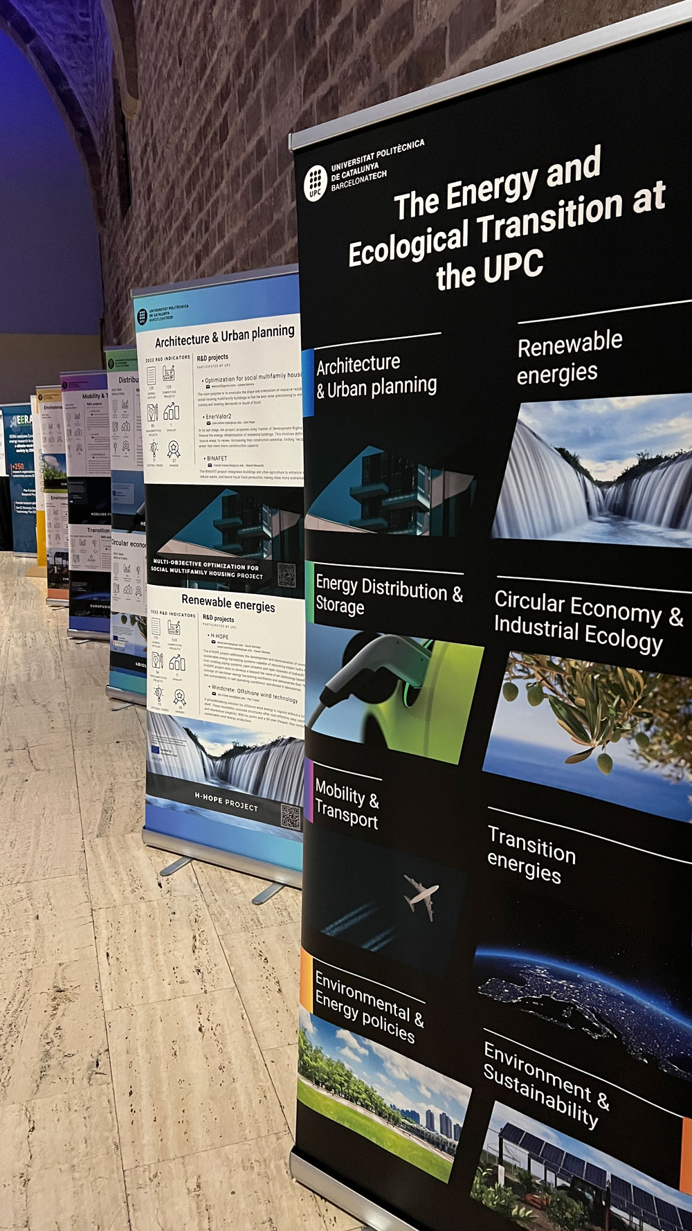 Los investigadores e investigadoras de la UPC han interactuado con los asistentes en el marco de una exposición de proyectos de investigación e innovación. Los proyectos que se han expuesto, articulados en torno a ocho áreas clave de investigación e innovación en transición energética, se pueden consultar a través del roll-up interactivo.