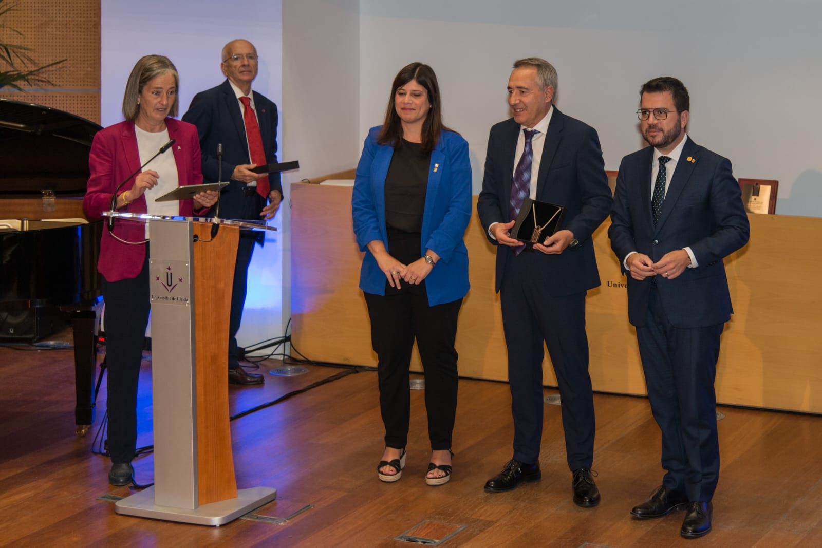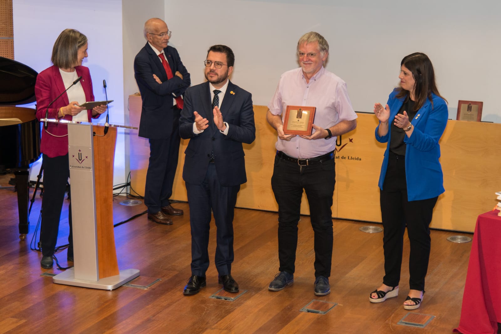 Josep Maria Rossell, recogiendo el galardón durante el acto de inauguración del curso académico de las universidades catalanas