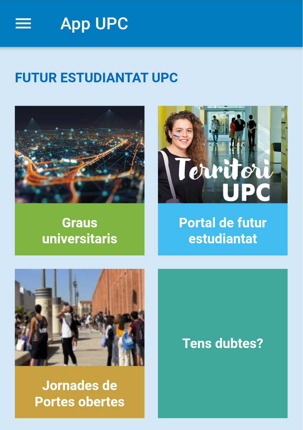 La UPC apuesta este año por prácticamente eliminar el papel como medio de información al futuro estudiantado, en una acción para reducir al máximo el impacto ambiental. En la misma línea, la Universidad estrena una nueva funcionalidad de la App UPC con un espacio de información específico para el futuro estudiantado, con accesos directos a la oferta de estudios de grado; en el portal de la web UPC enfocado al futuro estudiantado; en el calendario de jornadas de puertas abiertas de las escuelas y facultades, y un formulario donde poder enviar consultas.