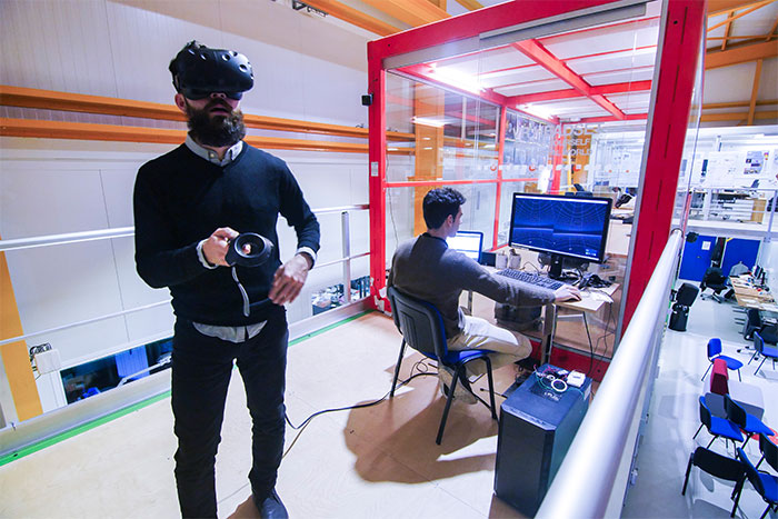 Utilizando tecnología haptic, que permite la interacción virtual mediante el tacto, el tercer proyecto propone un chaleco que transmite datos sobre la presión arterial, la temperatura o la respuesta a estímulos, para aportar más realismo sensitivo al entrenamiento virtual en situaciones de riesgo. La idea es que el chaleco registre los cambios fisiológicos que experimenta la persona al realizar estos entrenamientos virtuales (en su ritmo cardíaco y respiratorio, y en la sudoración), con el objetivo de que el programa de entrenamiento se ajuste a la respuesta de la persona a cada situación de riesgo y determine cuándo está preparada para afrontarla.