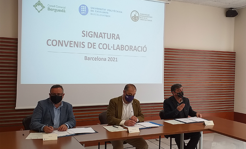 El Consejo Comarcal del Berguedà, la Asociación para el Desarrollo Rural de la Cataluña Central y la UPC han firmado este jueves, 8 de abril, un convenio de colaboración para la realización de dos estudios: un primero para frenar la despoblación en el Berguedà basado en el análisis de las nuevas habitabilidades en el medio rural, y un segundo estudio centrado en la dinamización del patrimonio industrial de la comarca.