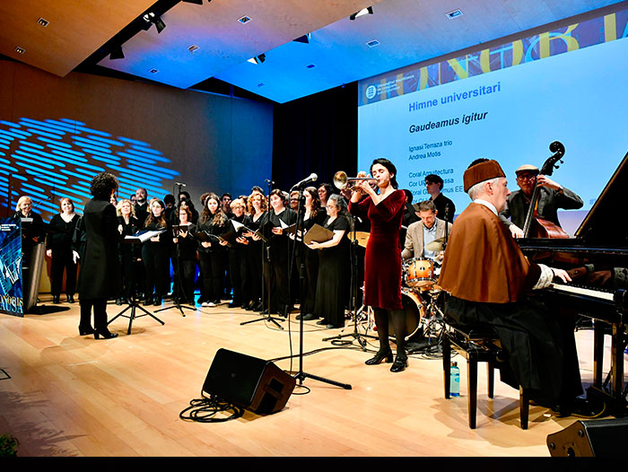 En este sentido, Terraza ha afirmado: "Espero que algún día lleguen las normativas que obliguen a desarrollar dispositivos y programas que sean pensados para todas las personas, sin exclusión". Y ha pedido a la UPC el compromiso firme "para conseguir que los próximos ingenieros e ingenieras informáticos, industriales, de telecomunicaciones, etc. incorporen en su formación el conocimiento y la capacidad para que la tecnología futura sea plenamente accesible para todos en las próximas generaciones". Terraza también ha hablado de las similitudes entre la inteligencia artificial y la música: "Con el desarrollo de la inteligencia artificial generativa, encuentro muchos paralelismos con la forma de conocimiento dinámico de los músicos de jazz, en la que combinamos el rigor de la música escrita con la improvisación".