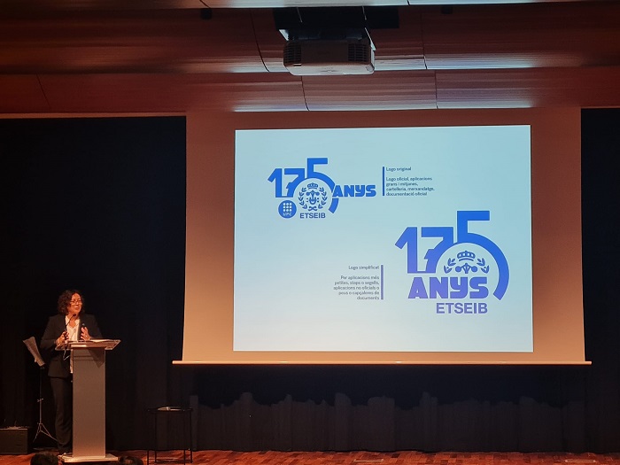 La directora de la ETSEIB, Amaia Lusa, ha presentado el nuevo logotipo del centro y la imagen visual para conmemorar el cumpleaños