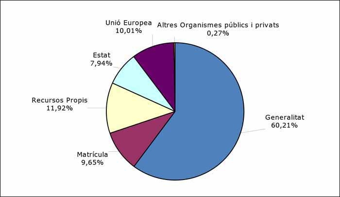 El presupuesto prevé un aumento de la matriculación de créditos, pero una recaudación ligeramente inferior a causa de la reducción de precios aplicada por la Generalitat. En todo caso, se prevé que esta reducción sea compensada por una transferencia adicional de recursos. En concreto, se ha previsto la plena ocupación de los grados y un ligero incremento de la oferta. Por otra parte, se prevé un crecimiento de la matrícula en los estudios de doctorado y de máster debido a la reducción de tasas para estudiantes extracomunitarios, lo que compensaría el impacto de la bajada de precios de estos estudios.