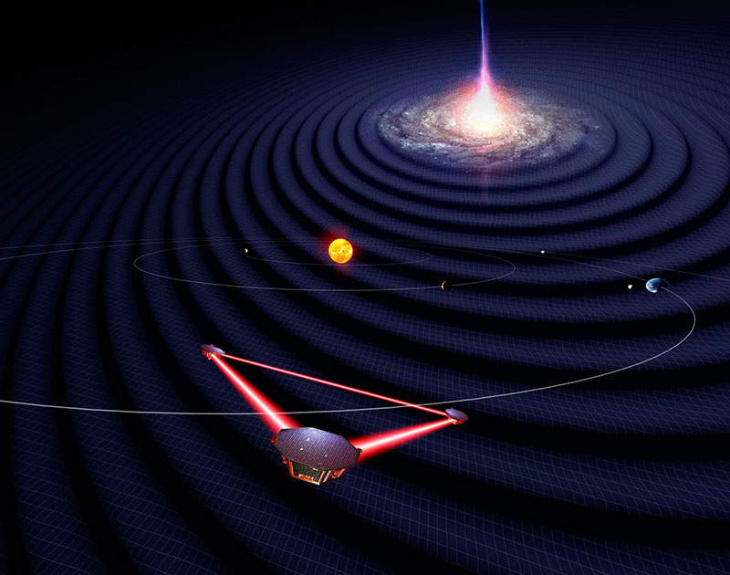 LISA captará las ondas en el espacio-tiempo provocadas por la colisión de enormes agujeros negros en los centros de las galaxias de todo el Universo. Esto permitirá rastrear el origen de estos objetos, representar su crecimiento hasta alcanzar millones de veces más masa que la del Sol y determinar su función en la evolución de las galaxias.