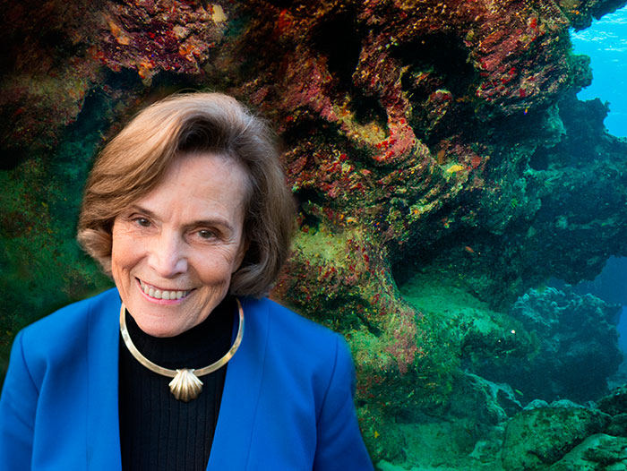 Montaje fotográfico: retrato de Sylvia A.Earle (imagen de ©Todd Brown) sobre un fondo marino