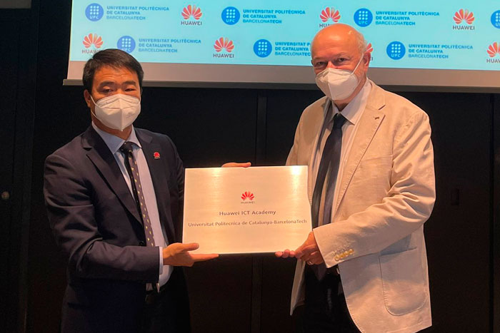 La empresa Huawei ha otorgado a la UPC una placa acreditativa como miembro de la Huawei ICT Academy, un campus virtual que ofrece servicios al estudiantado. Ambas entidades, que se han mantenido un encuentro durante el Mobile World Congress 2021 (MWC), han acordado intensificar la colaboración mutua para fomentar el talento joven.