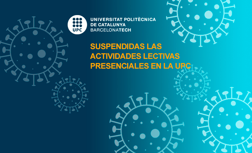 La Universitat Politècnica de Catalunya · BarcelonaTech (UPC) ha suspendido su actividad lectiva presencial para los próximos 15 días. La suspensión es prorrogable en función de la situación de emergencia de salud pública y de las indicaciones que traslade el Gobierno de la Generalitat de Catalunya.