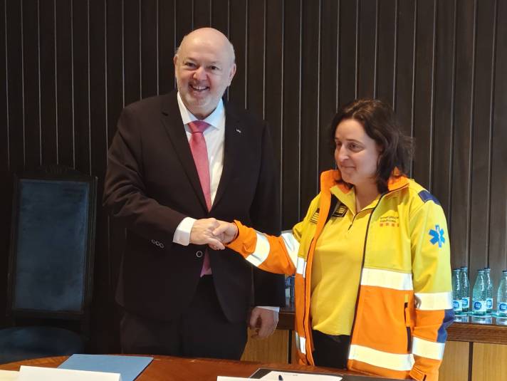 La firma del convenio ha sido formalizada por el rector de la Universitat Politècnica de Catalunya - BarcelonaTech (UPC), Daniel Crespo, y la directora del SEM, Anna Fontquerni i Gorchs, acompañados por el director Médico del SEM, Jorge Morales; el jefe de Servicios Especializados y Extraordinarios, Joan Carles Gómez; y el profesor de la Escuela de Ingeniería de Telecomunicación y Aeroespacial de Castelldefels (EETAC), Enric Pastor, investigador del Laboratorio de Drones de la UPC, entre otros representantes institucionales.