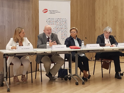 En la sesión de presentación del Campus de la Movilidad Sostenible UPC-Martorell a las entidades miembro del Pacto Industrial de la Región Metropolitana de Barcelona han participado Daniel Crespo, rector de la Universitat Politècnica de Catalunya · BarcelonaTech (UPC); Eva Menor, vicepresidenta del Pacto Industrial, presidenta del Área de Desarrollo Económico, Turismo y Comercio de la Diputación de Barcelona y alcaldesa de Badia del Vallès; M. Rosa Fiol, presidenta de la Comisión de Formación del Pacto Industrial y representante de Foment del Treball; Juan José Torres, director general del Servicio Público de Empleo de Cataluña (SOC), y Xavier Ayneto, delegado del Rector en el Campus de la Movilidad Sostenible UPC-Martorell.
