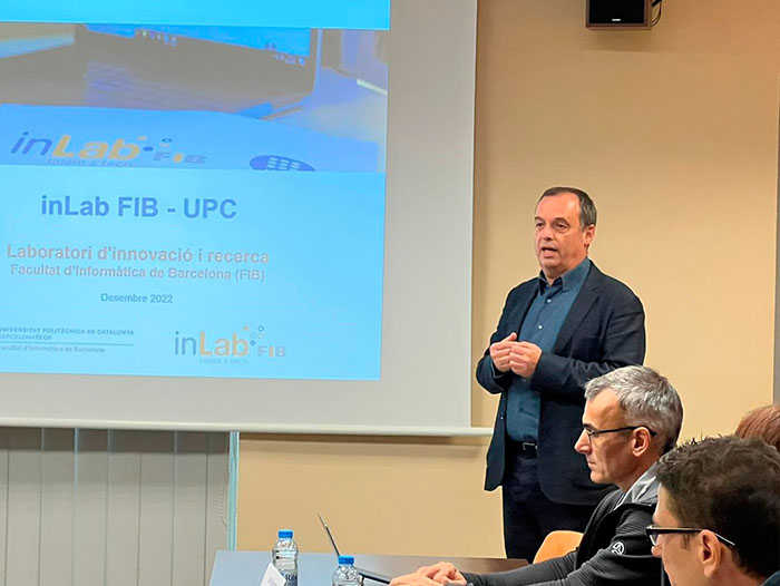 La visita de la delegación de altos mandos de los Mossos d'Esquadra con la dirección y los responsables de las diferentes áreas de experiencia del inLab FIB, el laboratorio de innovación e investigación de la Facultad de Informática de Barcelona (FIB) de la Universitat Politècnica de Catalunya - BarcelonaTech (UPC), ha tenido lugar el día 2 de diciembre. La delegación ha estado encabezada por el Director General de la Policía, Pere Ferrer, y el Comisario Jefe, Eduard Sallent. También han asistido 11 mandos y responsables de las diversas áreas tecnológicas de la Policía.