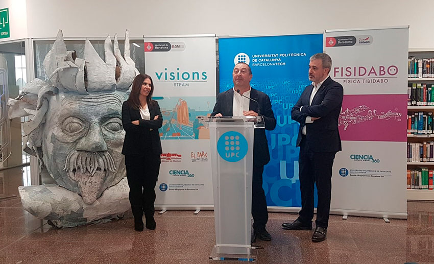 La Biblioteca de la Escuela de Ingeniería de Barcelona Este (EEBE) de la UPC ha sido el escenario de la presentación del proyecto 'Visions-STEAM', que ha contado con la presencia del Primer Teniente de Alcaldía, Jaume Collboni, el rector de la UPC, Francesc Torres, y la Directora General de B:SM, Marta Labata. 6.000 alumnos desde 2º de ESO a Bachillerato participarán este curso escolar en esta iniciativa que situará a Barcelona como referente educativo y la convertirá en una ciudad puntera en cuanto a la promoción de la cultural STEAM. Las actividades, organizadas conjuntamente entre B:SM, la EEBE de la UPC y Ciencia 360, se realizarán en el Parque de Atracciones Tibidabo, el Estadio Olímpico Lluís Companys y el Parque del Fórum.