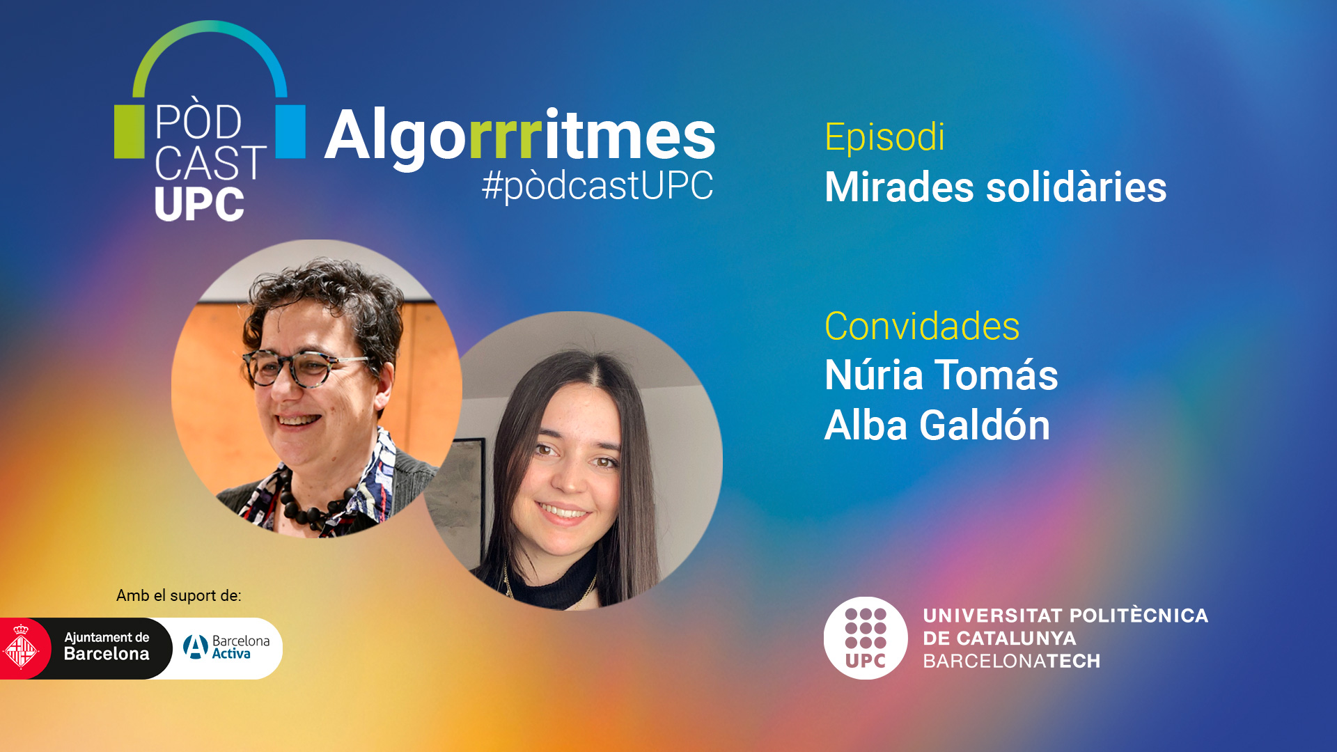 'Mirades solidàries' es el duodécimo epidosio de la serie 'Algorrritmes UPC', una iniciativa de la UPC para acercar a la ciudadanía, en especial al público joven, los últimos avances científicos y tecnológicos de la mano de investigadores e investigadoras de la Universidad, y que cuenta con el apoyo del Ayuntamiento de Barcelona y Barcelona Activa.
