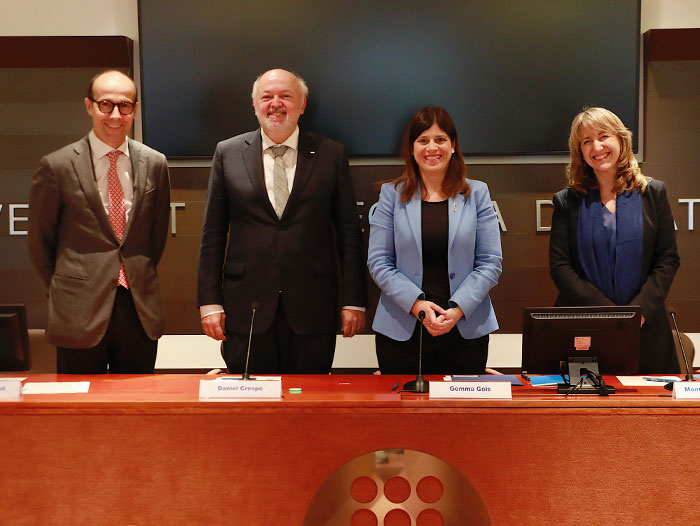 En su discurso de toma de posesión, la nueva presidenta ha expresado su agradecimiento y compromiso con la UPC para trabajar, con el rector y todo el Consejo, al potenciar cuatro pilares estratégicos: la internacionalización; la capacidad de innovación conjuntamente con las empresas; el refuerzo para aproximar la UPC a los jóvenes entre los 15 y 17 años y, en general, a los “jóvenes de espíritu” de todas las edades. El cuarto pilar es el refuerzo y la creación de los puentes institucionales necesarios, fomentando el trabajo armónico del conjunto de la sociedad civil, para que la Universidad sea una parte muy activa del impulso económico y social.