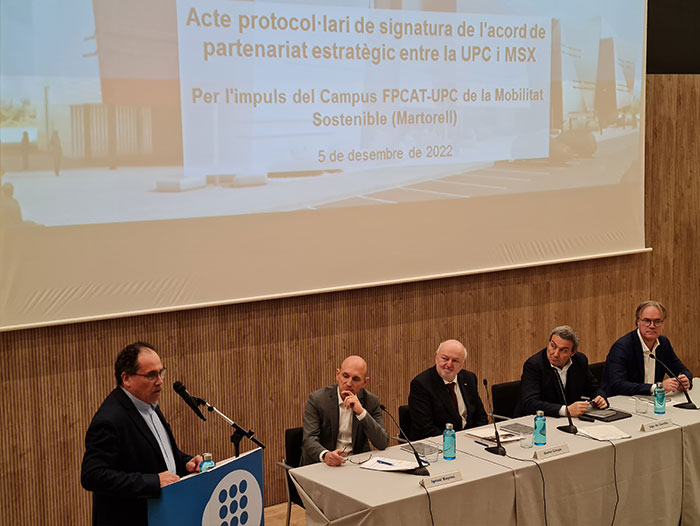 El convenio lo han firmado el 5 de diciembre, Daniel Crespo, rector de la UPC, y Ugo de Carolis, CEO & Executive Chairman de MSX International, en un acto en el que han intervenido también Enric Vinaixa, secretario de Trabajo de la Generalitat de Cataluña, e Ignasi Buyreu, director del Campus FPCAT-UPC de la Movilidad Sostenible.
