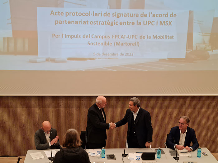 La UPC y la empresa MSX International TechServices (MSX), una organización global que ofrece soluciones y servicios basados en tecnología a la industria de la movilidad, han firmado un acuerdo de colaboración para el desarrollo del Campus FPCAT-UPC de la Movilidad Sostenible (Martorell), a partir del cual la empresa formará parte del proyecto como socio estratégico.