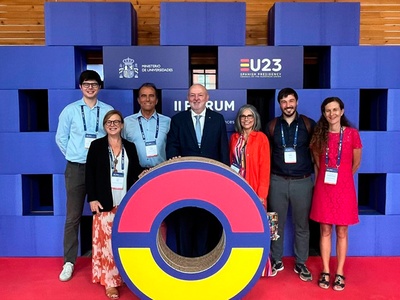 El rector de la UPC, Daniel Crespo; la vicerrectora de Política Internacional, Lourdes Reig, y otros representantes de la Universidad y de la alianza Unite! han asistido al II Foro de Alianzas Universitarias Europeas, impulsado por el Ministerio de... -