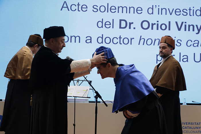 Oriol Vinyals ha recibido de manos del rector, Francesc Torres, el diploma, el birrete, el anillo y los guantes blancos, como símbolos del doctorado. En su intervención, el rector ha afirmado que con la investidura de Oriol Vinyals como doctor honoris causa "celebramos el talento, la visión y la capacidad de transformar el futuro que nace de nuestras aulas" y se ha referido a la responsabilidad de la UPC "de formar a la próxima generación de líderes en inteligencia artificial capaces no solo de entender y desarrollar el mundo digital, sino de diseñarlo de manera responsable y sostenible".