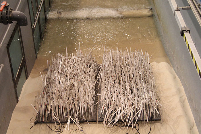 El Laboratorio de Ingeniería Marítima (LIM) de la UPC está realizando un estudio con posidonias de plástico, que ensaya en el Canal de Investigación y Experimentación Marítima, para comprobar la viabilidad de adaptar a las playas un sistema con estas plantas para frenar la regresión de las costas.