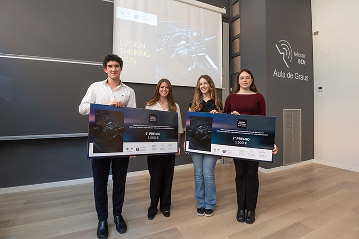 El segundo premio, de 1.500 euros, ha sido para el equipo ET-2, constituido por los estudiantes Carmen Unió, José Ramírez, David Salinas y Emma Oliva, de la Escuela de Ingeniería de Barcelona Este (EEBE). El objetivo del concurso es conjugar formación universitaria y retos reales en el ámbito de la automoción. El jurado del premio ha valorado especialmente las propuestas técnicas y la aplicabilidad de los sistemas desarrollados, entre otros aspectos.
