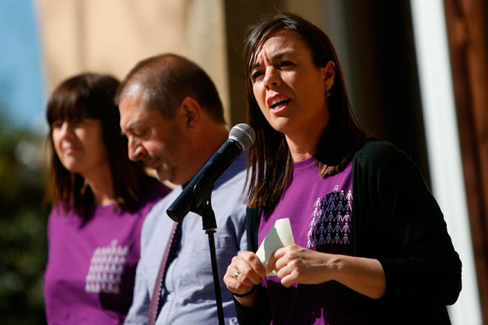 La vicerectora de Docencia y Estudiantado, Núria Garrido, presentando el programa 'Aquí STEAM' junto al rector, Francesc Torres, y Mar Camacho, directora general de Innovación del Departament d’Ensenyament de la Generalitat de Catalunya