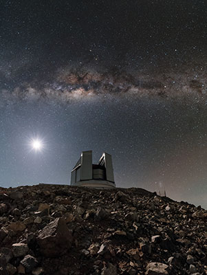 El Telescopio de Sondeo Visible e Infrarrojo para Astronomía (VISTA), ubicado en el Observatorio de Paranal, en el desierto de Atacama, uno de los mejores lugares del mundo para la astronomía. Imagen: ESO/B. Tafreshi (twanight.org)