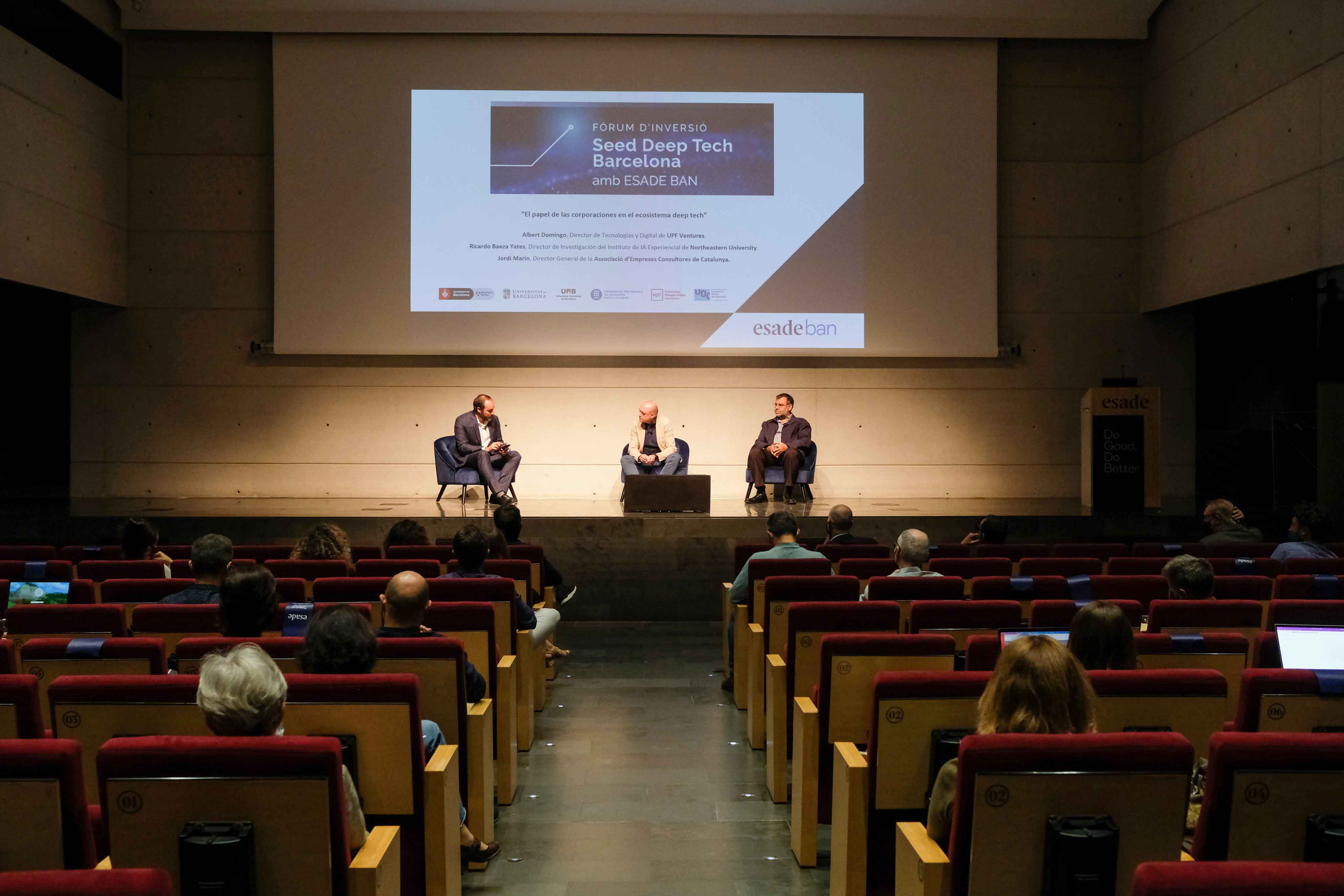 El Ayuntamiento de Barcelona, a través de Barcelona Activa, conjuntamente con cinco universidades catalanas –la Universitat Politècnica de Catalunya · BarcelonaTech (UPC), la Universidad de Barcelona (UB), la Universidad Autónoma de Barcelona (UAB), la Universidad Pompeu Fabra (UPF), la Universidad Abierta de Cataluña (UOC)– y con Esade BAN, la red de business angels promovida por Esade Alumni, han celebrado, el 13 de octubre, el Seed Deep Tech Barcelona, el primer foro de inversión dirigido a start-up deep tech. Estas empresas de nueva creación basadas en ciencia y tecnología se caracterizan por requerir periodos de desarrollo e inversiones superiores al resto antes de llegar al mercado.