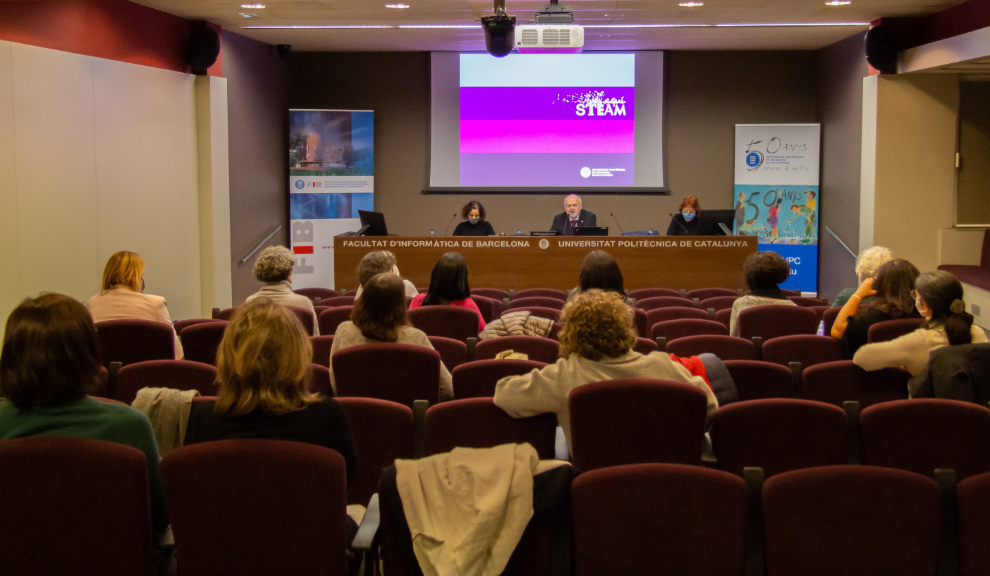Un total de 35 profesoras de diferentes escuelas y facultades de la UPC participan, este curso 2021-2022, en la nueva edición del programa Aquí STEAM UPC. Una implicación en el fomento de vocaciones científicas y tecnológicas y de atracción del talento femenino que ha sido reconocida en un acto, el 1 de diciembre, en la Facultad de Informática de Barcelona (FIB).