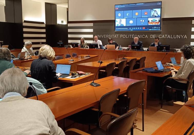 El Consejo de Gobierno de la UPC, reunido en la Sala de Juntas del Rectorado, en Barcelona
