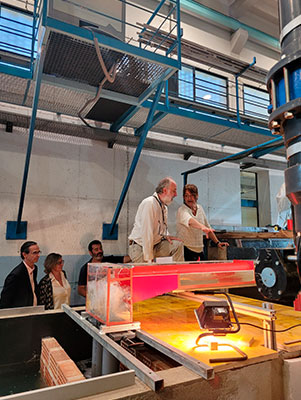 El 23 de julio, la primera teniente de alcaldía del Ayuntamiento de Barcelona, Laia Bonet, ha visitado el modelo hidráulico experimental que se ha puesto en marcha en el Laboratorio de Morfodinámica Fluvial, vinculado a la Escuela de Caminos de la Universitat Politècnica de Catalunya - BarcelonaTech (UPC). En la visita, Laia Bonet ha estado acompañada por el vicerrector de Transferencia, Innovación y Emprendimiento de la UPC, Climent Molins; la directora de la Escuela de Caminos, Esther Real; el director de Proyectos y Obra BCASA, Alejandro Ortiz, y el director de IGC, Javier Solís.