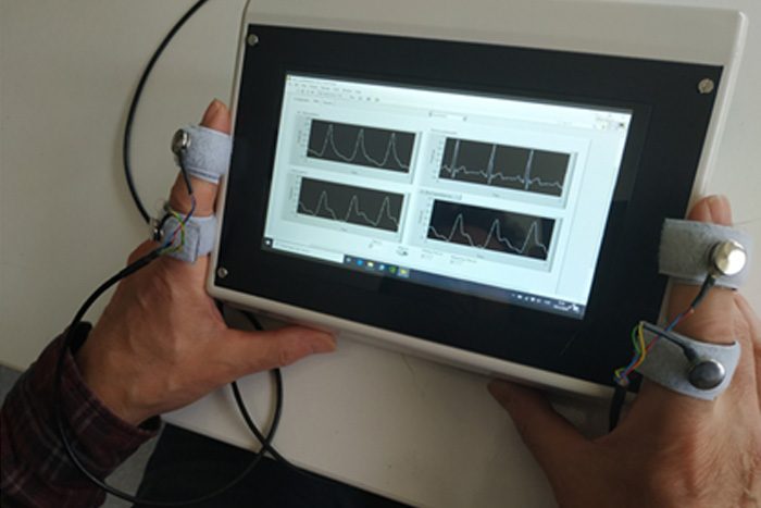 El grupo de investigación de Instrumentación, Sensores e Interfaces (ISI) ha desarrollado el NICVA, un nuevo dispositivo médico portátil no invasivo que evalúa rápidamente el funcionamiento del sistema cardiovascular. Presentado en la última edición del Mobile World Congress de Barcelona, el pasado junio, se trata de un aparato médico capaz de monitorizar el funcionamiento del sistema cardiovascular y detectar el electrocardiograma (ECG). Asimismo, obtiene datos sobre la función mecánica del corazón y las arterias, mediante una onda de polvo arterial proximal y dos ondas distales respecto al corazón.