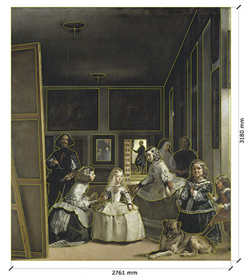 Las Meninas, también llamada La familia de Felipe IV, está considerada la obra maestra del pintor barroco Diego Velázquez (Sevilla, 1599 - Madrid, 1660). Finalizada en 1656, está pintada en óleo sobre un lienzo de grandes dimensiones: 3,18 metros de ancho por 2,76 metros de altura.