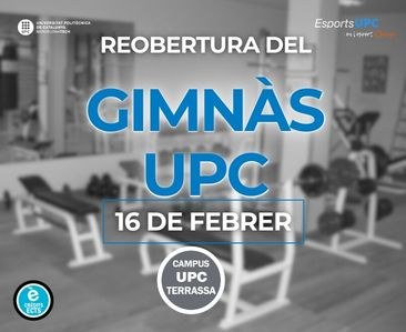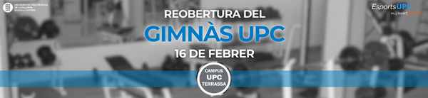 Abona-t'hi Subscriu-te al Butlletí Crèdits Competicions Competicions ActivitatsActivitats Instal·lacions Instal·lacions Campus Campus Salut Salut PDI-PTGAS Notícies Reobertura Gimnàs UPC Campus Terrassa 11/02/2026 Senderisme: Montserrat 02/02/2026 Nutrició 02/02/2026 Titulacions Nàutiques 12/01/2026 Pauses actives saludables 12/01/2026 2n Torneig de Pàdel Mixt PDI-PTGAS de la UPC 12/01/2026 Previous Next Esports UPC en dades 4913Promoció i salut 2085Competicions internes 1210Campionats de Catalunya 188Tutoresport-UPC 1499 Unirun 492Programa PDI-PTGAS Memòries d'activitats Serveis online Associacions UPC