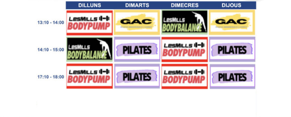 - Horaris: es mantenen els horaris habituals de les activitats dirigides:
