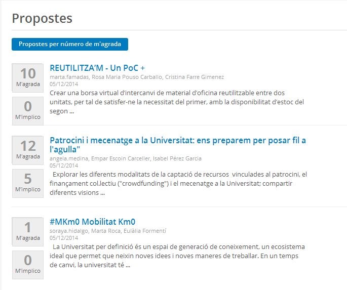 Si us agraden les propostes, feu "M'agrada" o si us agradaria estar en l'equip de treball, feu "M'hi vull implicar" indicant perquè. Cliqueu en els enllaços anteriors (només operatius per a personal UPC) i trobareu tota la descripció de la proposta i els botons per donar el vostre suport. També us podreu adherir al manifest de Nexus24.