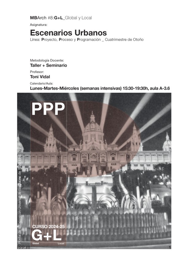 La desestructurada ubicación de importantes equipamientos institucionales —el Arxiu de la Corona d’Aragó, el Auditori y Museu de la Música, y el Teatre Nacional de Catalunya— a lo largo de una desdibujada Meridiana añade incoherencia al paisaje urbano. Esta disposición contrasta con la visión integral de Cerdà, y acentúa el vacío en la Plaça de les Glòries. La falta de estructura urbana en este tramo es evidente, y se ve exacerbada por respuestas arquitectónicas introspectivas que ignoran la Meridiana como espacio urbano cualifi cado. Se reproduce la sensación, además, de lugar inacabado. Es por ello que esta asignatura busca desarrollar en los estudiantes una comprensión profunda y crítica del espacio público y su relación con la arquitectura, utilizando la Avenida Meridiana como un caso de estudio central. Con este enfoque, se pretende fomentar una visión integral y aplicada de la arquitectura urbana, preparando a los estudiantes para enfrentar los desafíos contemporáneos en la planifi cación y diseño de entornos urbanos.
